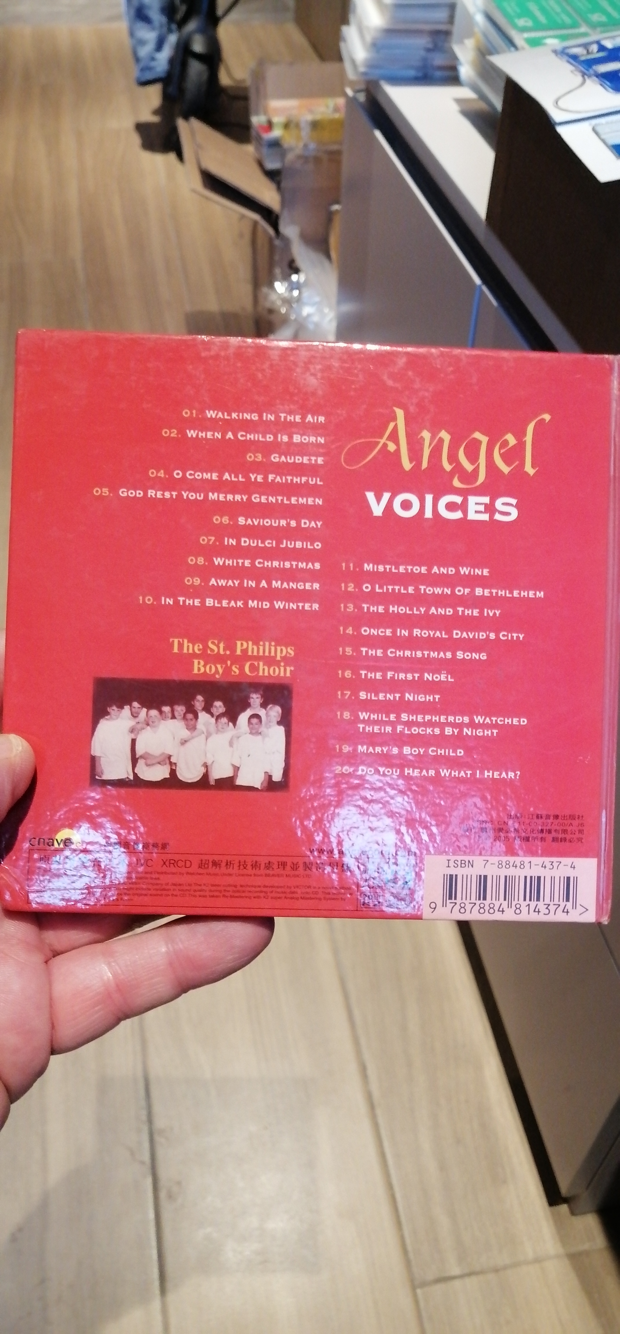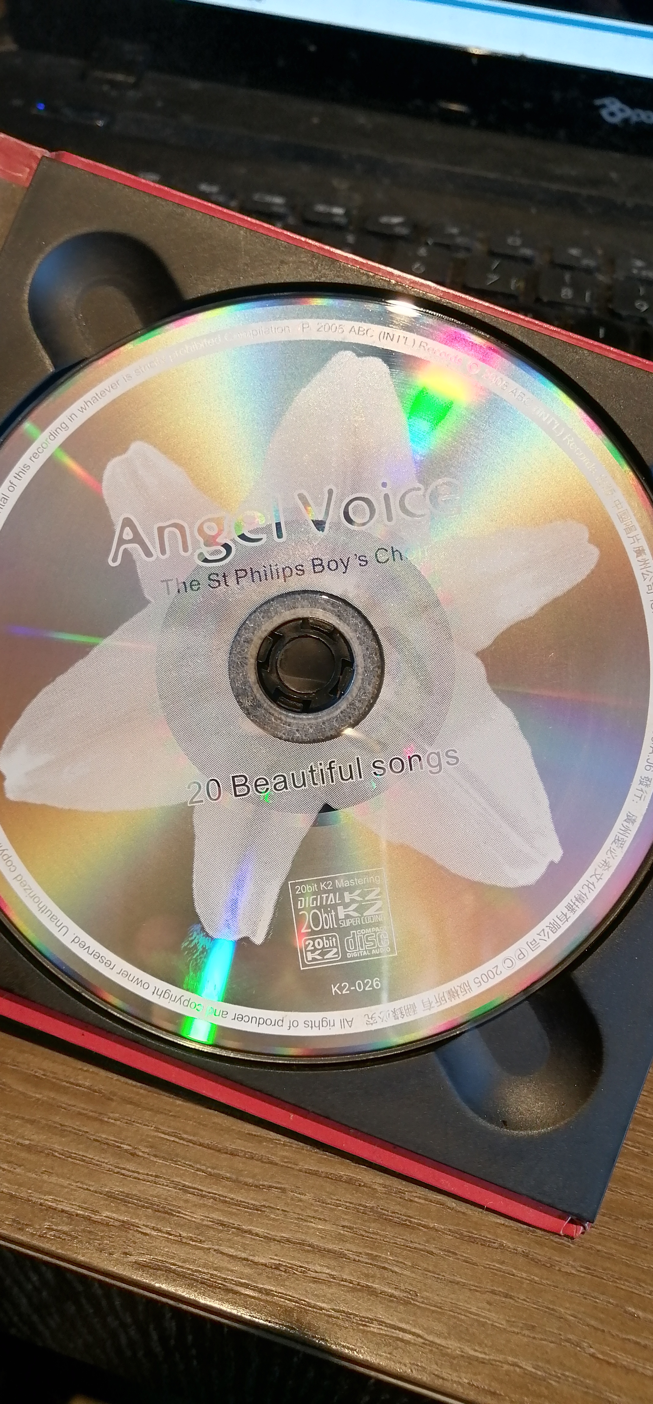 Danke für dieses unbekannte Exemplar. Du hattest ja schon einmal von buchähnlichen Chinavarianten berichtet, wobei ich bei China immer automatisch an inoffizielle Ausgaben denke. Ich habe mir z.B. von den drei Angel-Voices-Ausgaben auch ein Buch gebastelt. Und Angel Voices ist es hier eigentlich korrekterweise, auch wenn irgend jemand auf die Idee gekommen ist, ein Bild von Libera mit drauf zu drucken. Dementsprechend stammt die CD irgendwann aus der Zeit nach 2005, ach ne, direkt aus 2005, steht ja sogar drauf. Die ganzen anderen Angaben deuten schon auf eine offizielle CD hin.